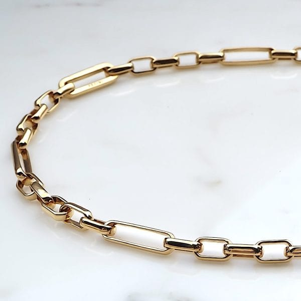 The necklace is crafted from 24kt. gold Vermeil on recycled 925 sterling silver, measuring approximately 44 cm (17.32 inches) in length including our two uniq clasps. When split into two bracelets, each measures approximately 22 cm (8.66 inches) including clasps.