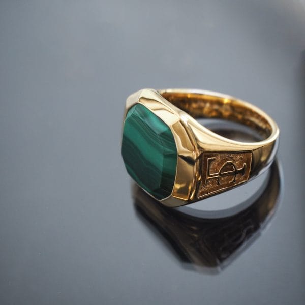 Introducing the Octa Green Gold Signet Ring, a true masterpiece that combines the natural beauty of green Malachite with the timeless elegance of gold Vermeil.