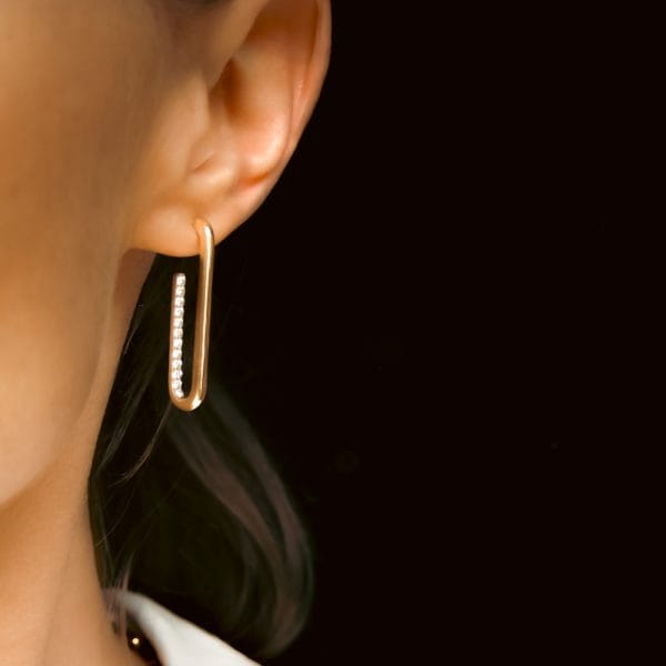 These elegant and modern earrings are designed in a sleek “U” shape, offering a refined yet contemporary touch to your everyday style. The shimmering zirconias, which come to life when viewed from the perfect angle, add an element of playful surprise. Along with a subtle touch of glamour, the sustainable materials make these earrings both stylish and eco-conscious – perfect for those who appreciate timeless elegance with a modern twist.